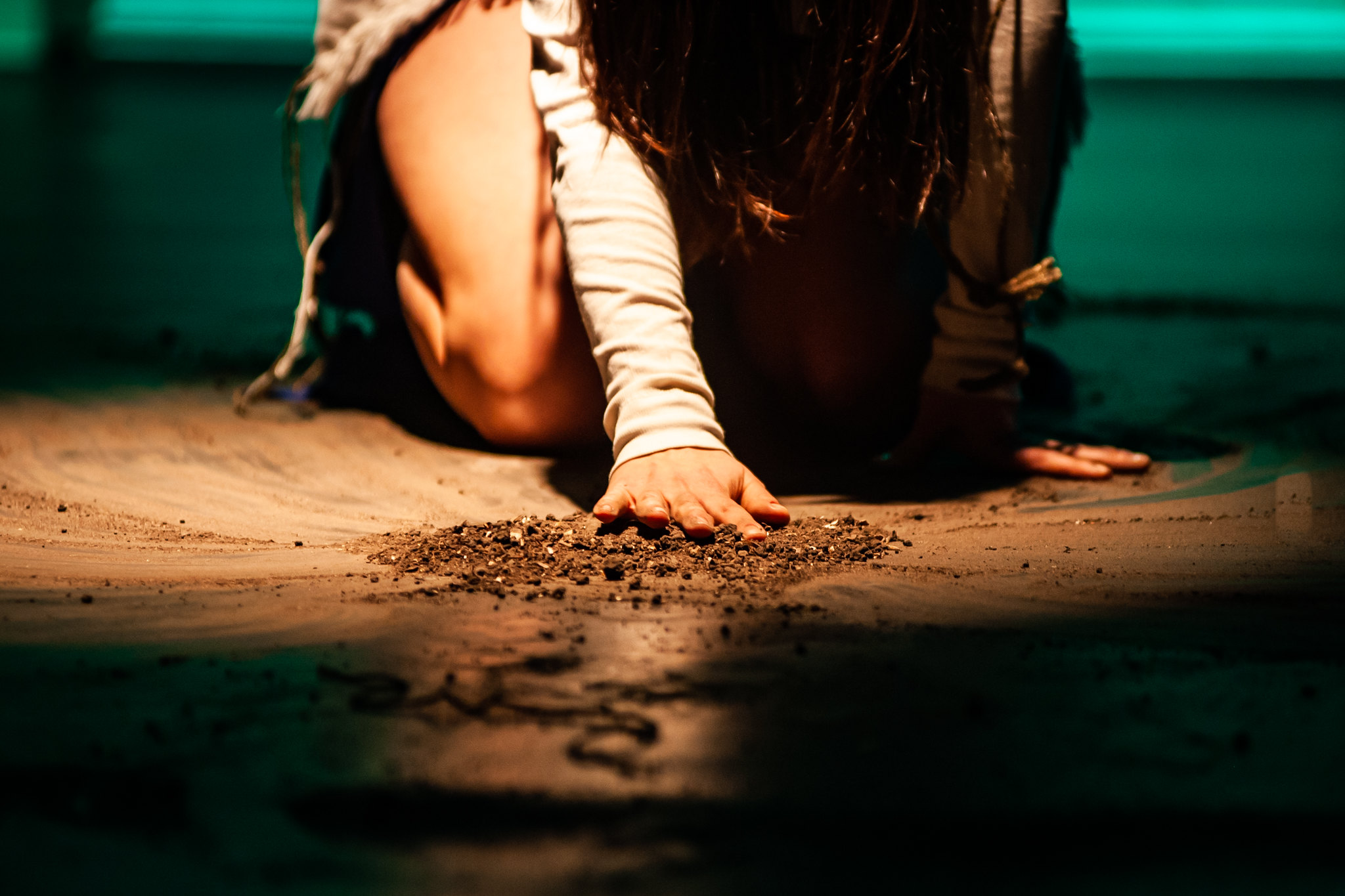 Чотири перформерки Катерина Радушинська, Аліса Волкова, Олена Єрмішкіна та Аня Погорєлова по черзі розповідали свої многологи про війну та власні переживання. У кожної був свій символ – військовий шолом, земля, червоні свічки. Далі вони рухались під електронну музику, яку також, за відчуттями на ходу, створював композитор, допоки не настав апогей їхніх переживань та не погасло світло. Далі показали проекцію з розповідями від всіх перформерок, що їх зараз підтримує. Одночасно дівчата скидали з себе одяг який був в землі та воску. Метою було «перетравити» все те, що довелося пережити за останні два роки.