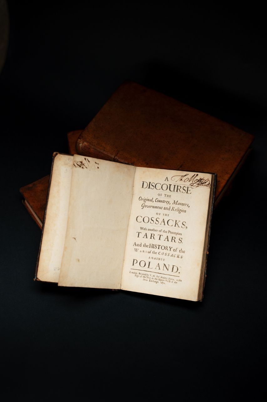 Серед експонатів — видання Гійома де Боплана (1651), П’єра Шевальє (1663), Йоганна Гербінія (1675), Андреаса Целларія (1659), Вольтера (1731) та Джозефа Маршалла (1772). Це книги, які стали ключовими джерелами для вивчення історії, побуту, культури та політики українських земель.
