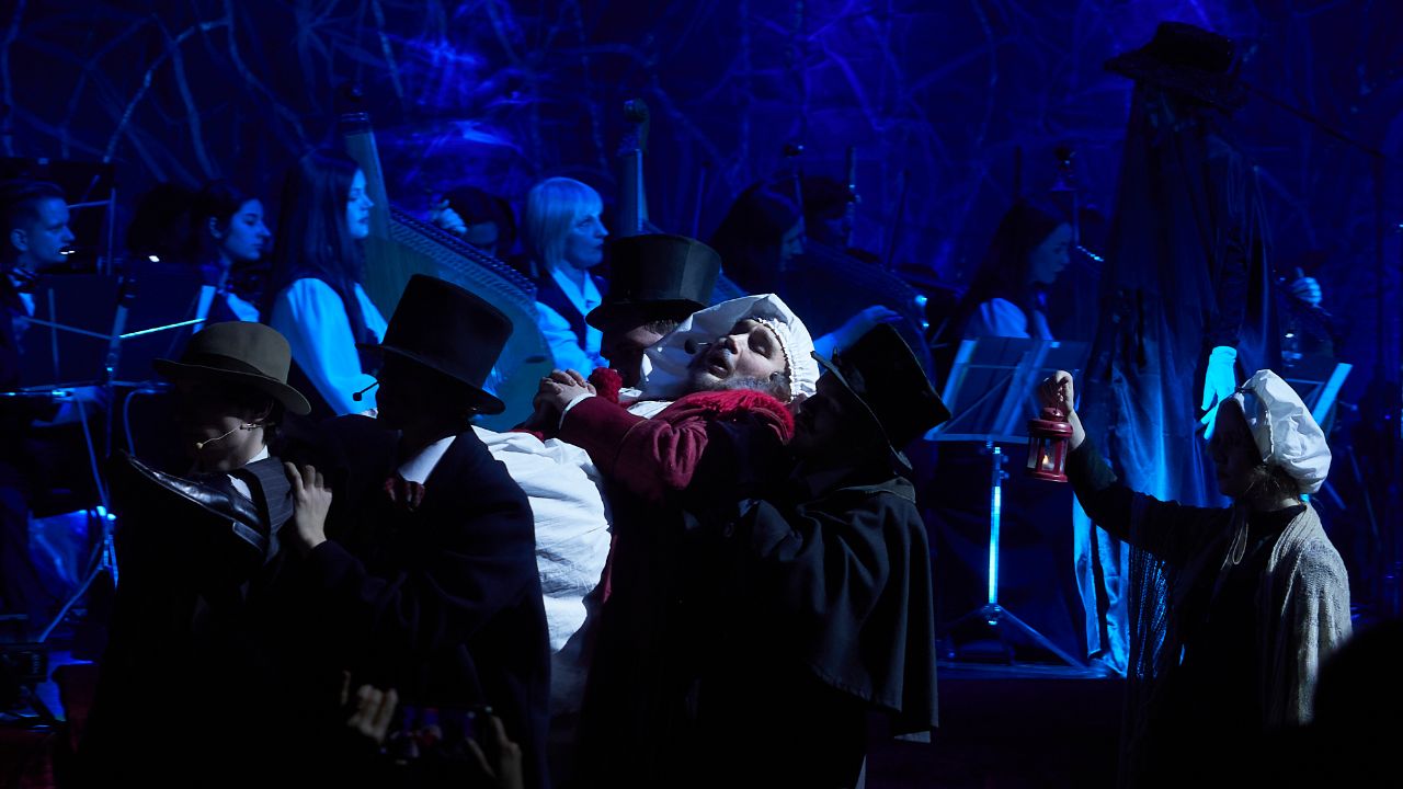 Вистава є сучасною театрально-музичною інтерпретацією відомої повісті Чарльза Діккенса. Сюжет розповідає про Скруджа — чоловіка, який забув, що таке тепло, любов і щирість, та його подорож різдвяною ніччю у супроводі Духів Минулого, Теперішнього та Майбутнього.