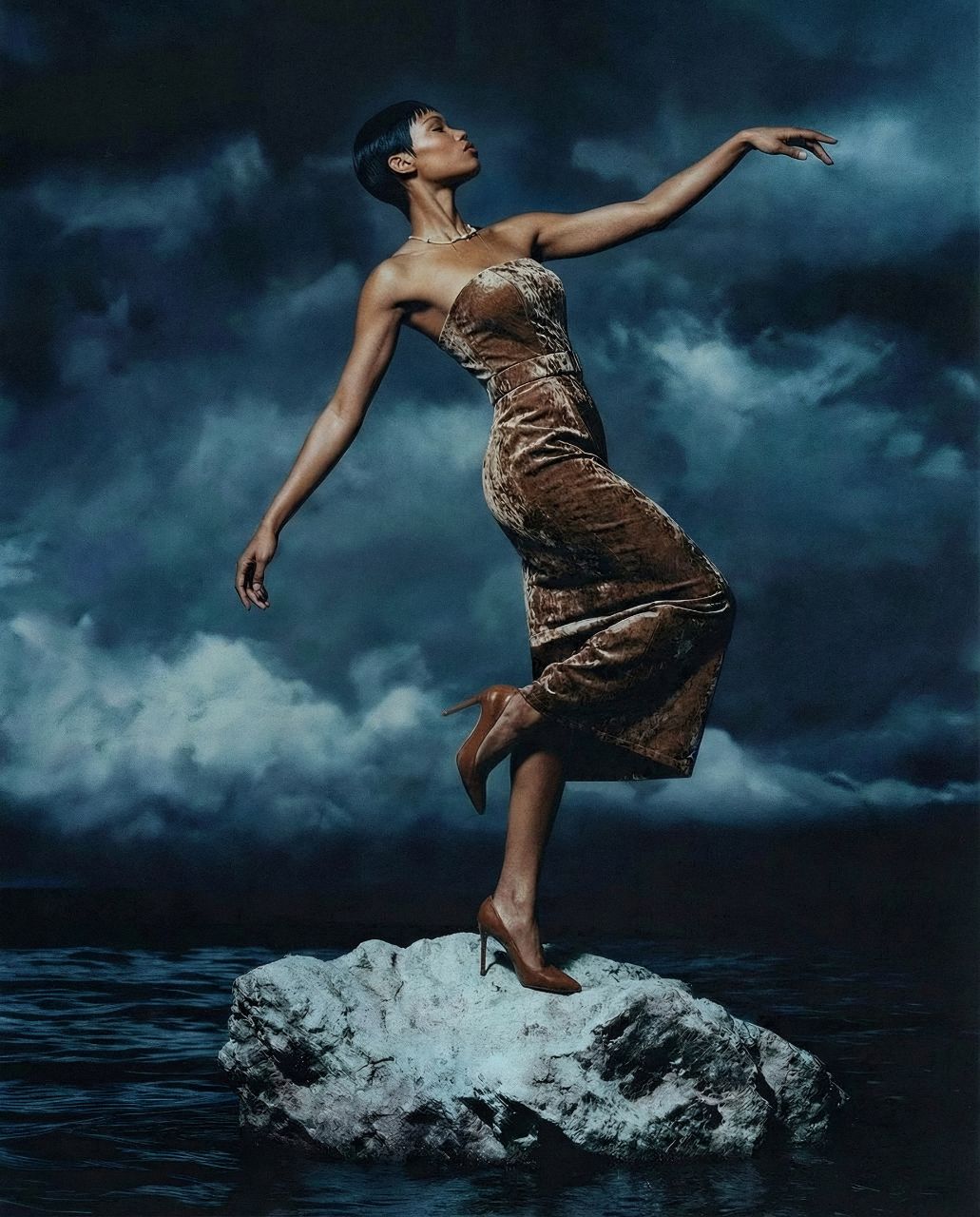 «Прозора шовкова органза — про легкість хвилі. Бархат із перламутровим відблиском — про глибину океану. Золота тканина нагадує мені блиск сонця, що торкається поверхні води перед заходом», — розповідає вона.