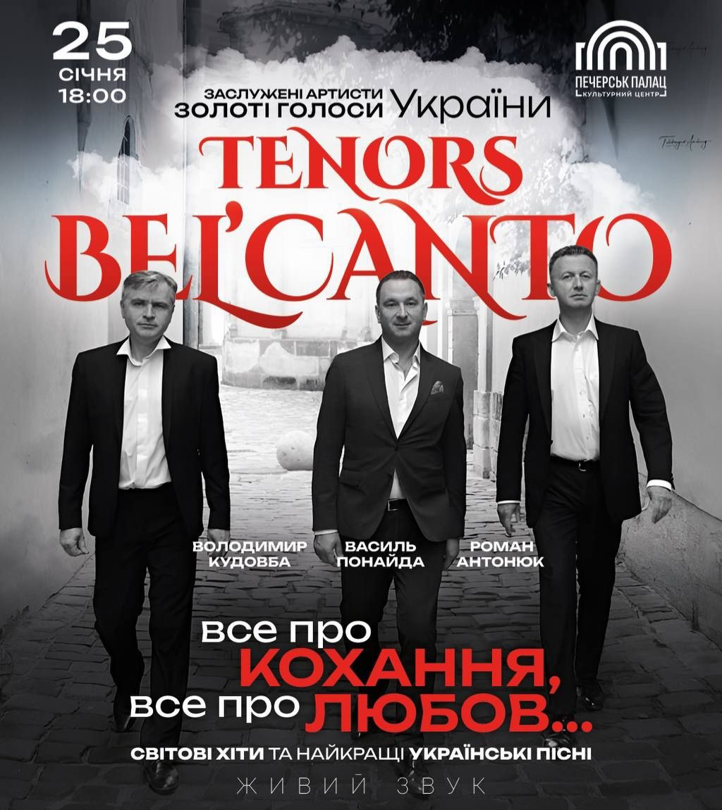 25 січня у Печерськ Палаці в Києві пройде концерт колективу Tenors BEL’CANTO. Після тривалої перерви ансамбль виступить у столиці з програмою «Все про кохання, все про любов!».